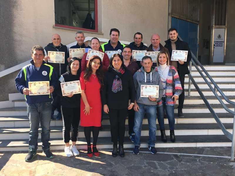 Si è tenuto nelle giornate del 21 e 22 febbraio il corso per Ausiliari Ambientali, la figura istituita da una delberazione di Consiglio Comunale del 2016 e concepita per garantire un più capillare controllo del territorio contro l’abbandono dei rifiuti. Il sindaco Roberta Tintari ha consegnato stamattina gli attestati ai corsisti: