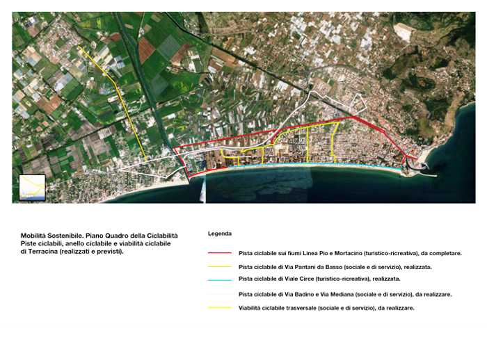 Secondo quanto approvato, il Piano Quadro della Ciclabilità andava completato realizzando un anello ciclabile addirittura di raccordo tra Borgo Hermada e Terracina Centro; i tronconi di piste attualmente presenti e decisamente mal messi, del Mortacino, Lungo Linea e Viale Circe assumevano un ruolo cruciale nella realizzazione di un “anello ciclabile”, fulcro di una agognata mobilità sostenibile perché finalizzato non solo a scopi turistico-ricreativi ma anche sociali e di servizio.