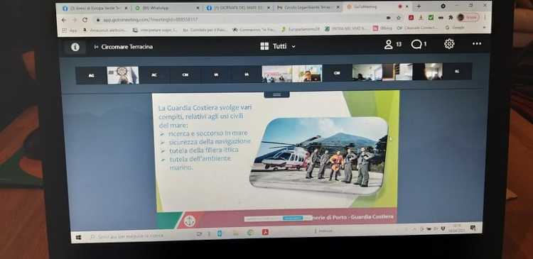 Il Circolo Legambiente Terracina “Pisco Montano” con la collaborazione di Legambiente Lazio e del Dipartimento Scuola e Formazione di Legambiente nazionale, ha supportato con la propria piattaforma tecnologica per videoconferenze on-line “LA GIORNATA NAZIONALE DEL MARE” istituita il 13 febbraio 2018, con l’entrata in vigore del nuovo Decreto sul Codice della Nautica, con lo scopo di sensibilizzare le giovani e i giovani attraverso attività e momenti di confronto al fine di sviluppare il concetto di “cittadinanza del mare” e rendere le studentesse e gli studenti cittadini “attivi” del mare, ovvero tutori della sua conservazione e della sua cultura, e organizzata ogni anno dalla sezione locale della Associazione Nazionale Marinai d’Italia, in coordinamento con la Capitaneria di Porto- Guardia Costiera di Terracina, e dedicata agli Istituti Scolastici di Terracina. Un appuntamento ormai irrinunciabile che anche quest’anno si è deciso di rinnovare utilizzando stavolta la piattaforma on-line di Legambiente in modo da permettere la fruizione a distanza e in totale sicurezza con due eventi, il 14 e 15 aprile, aperti agli Istituti Scolastici che hanno aderito con le loro classi di scuola primaria e secondaria: I.C. Milani, I.C. Maria Montessori, ITS. A. Bianchini, Istituto San Giuseppe.