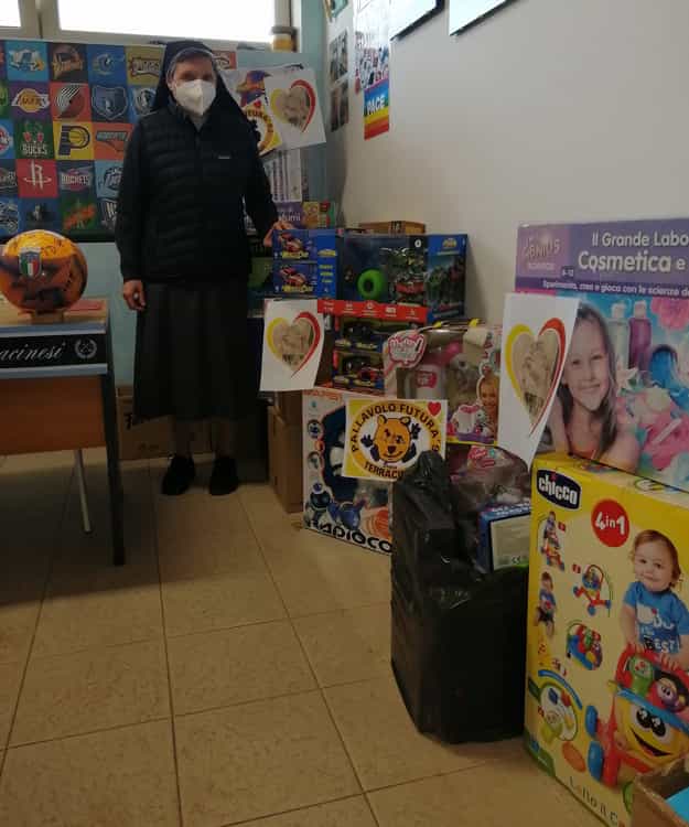 Nel frattempo la società , dopo aver brillantemente completato con successo i campionati Under 13 e 14, è pronta alla seconda parte di stagione con i tornei S3, Under 12 mini e pro e Coppa Primavera Under 16. Chiusura con la solidarietà . Il sodalizio, nella persona del dirigente Emiliano Perotti, ha consegnato alla Fondazione Gregorio Antonelli tantissimi regali e beni di prima necessità per bambini ospiti della struttura. Presente anche la Direttrice Suor Lorena Pedron.