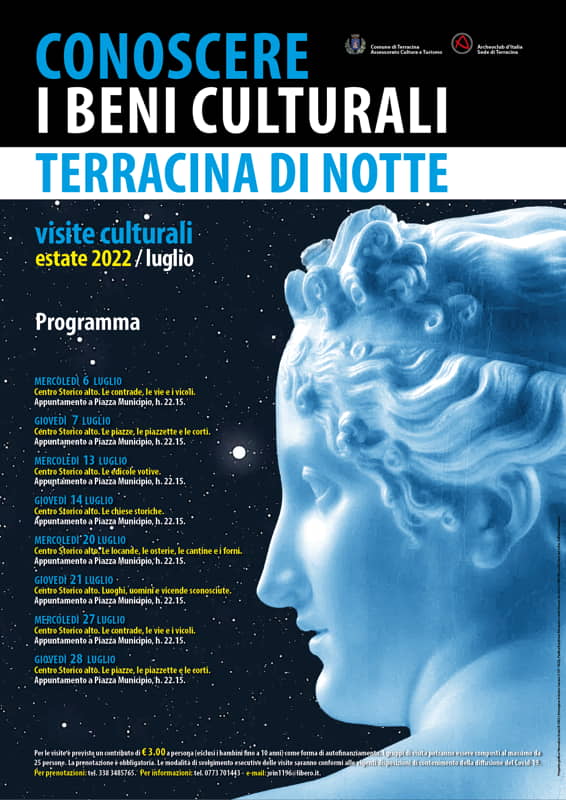 La Sede di Terracina dell’Archeoclub d’Italia, in collaborazione con il Comune di Terracina, anche per l’estate 2022 promuove e organizza, come avviene ormai dal 1995, l’iniziativa denominata “Conoscere i Beni Culturali”.