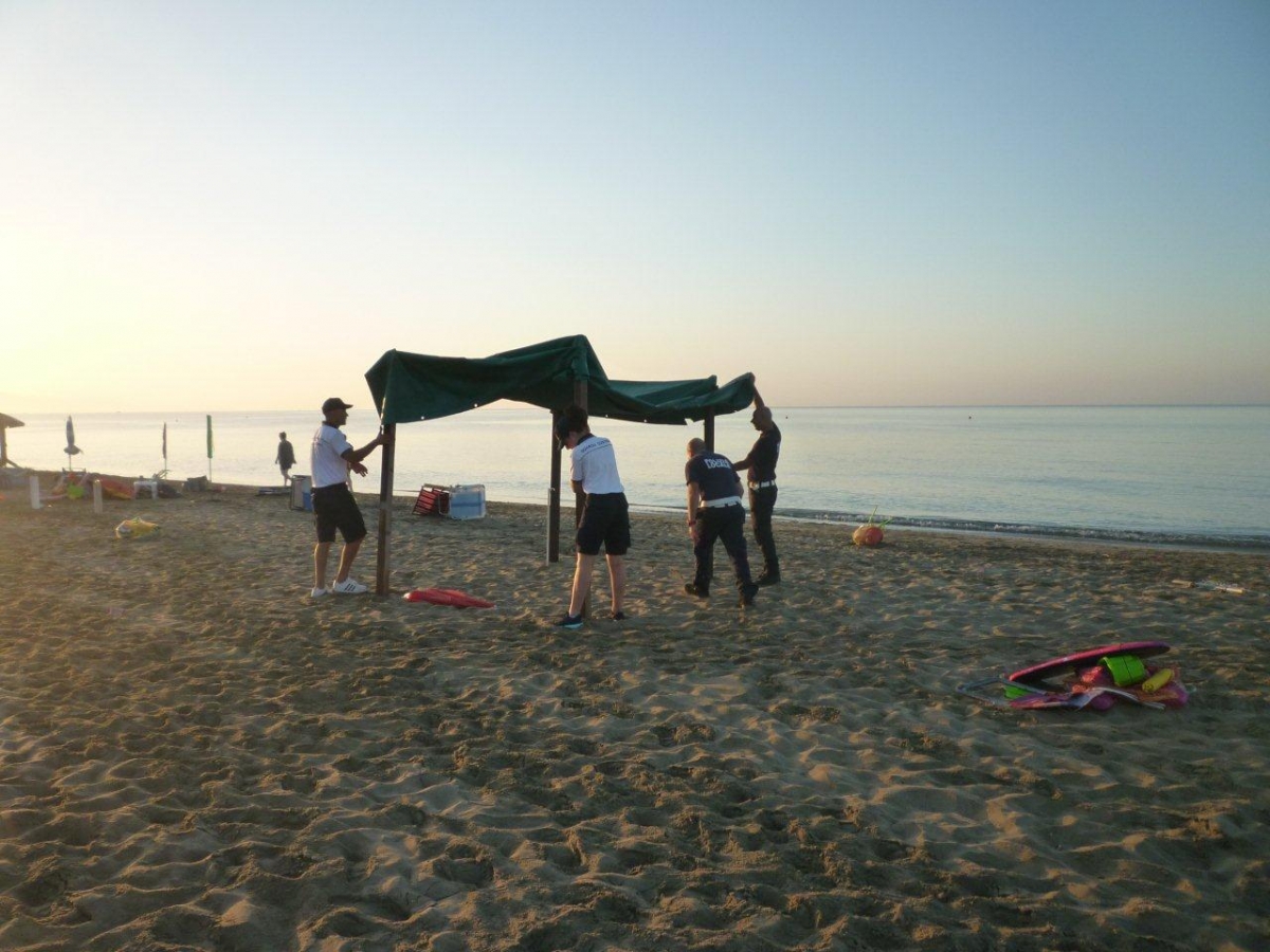 Intervento congiunto finalizzato al contrasto dell’occupazione di zone del demanio marittimo, da parte degli uomini della guardia costiera e degli agenti della polizia locale di Terracina. Nella giornata odierna personale dell’Ufficio Circondariale Marittimo di Terracina, congiuntamente agli agenti della polizia locale di Terracina, si sono recati in località 'Riva delle margherite', al fine di verificare la libera fruizione del litorale. Giunti sul posto, è stata riscontrata la presenza di numerose attrezzature balneari lasciate incustodite ed inutilizzate dai bagnanti, proprietari delle stesse. una preventiva ed arbitraria occupazione dell’area demaniale mediante il posizionamento complessivo di 124 ombrelloni, 17 lettini, 13 basi, 6 sdraio, 87 sedie e di un gazebo abusivo realizzato con pali in legno e copertura in tela, fissato mediante quattro vasi riempiti con cemento e nascosti sotto la sabbia, che, di fatto, hanno impedito la libera fruizione della spiaggia, a svantaggio di chi, giunto con la propria attrezzatura balneare al seguito, non avrebbe trovato spazi utili per collocarla . Il tutto in violazione all’art. 3.1.2 dell’Ordinanza balneare numero 04/2014/de.mar. emanata dal Comune di Terracina in data 26.06.2014. Non essendo stato possibile identificate i proprietari, ovviamente assenti al momento dell’accertamento in quanto le attrezzature erano incustodiete ed inutilizzate, si è proceduto al sequestro amministrativo di tutto il materiale a carico di ignoti. L’operazione in parola ha consentito lo sgombero e la messa in pristino della piena fruibilitaà dell’arenile libero per un’area pari a circa 12.000 mq. Ai contravventori, qualora identificati, verra’ comminata una sanzione, ai sensi dell’art. 1164 comma 2° del codice della navigazione, per un’importo pari a 200 euro.
